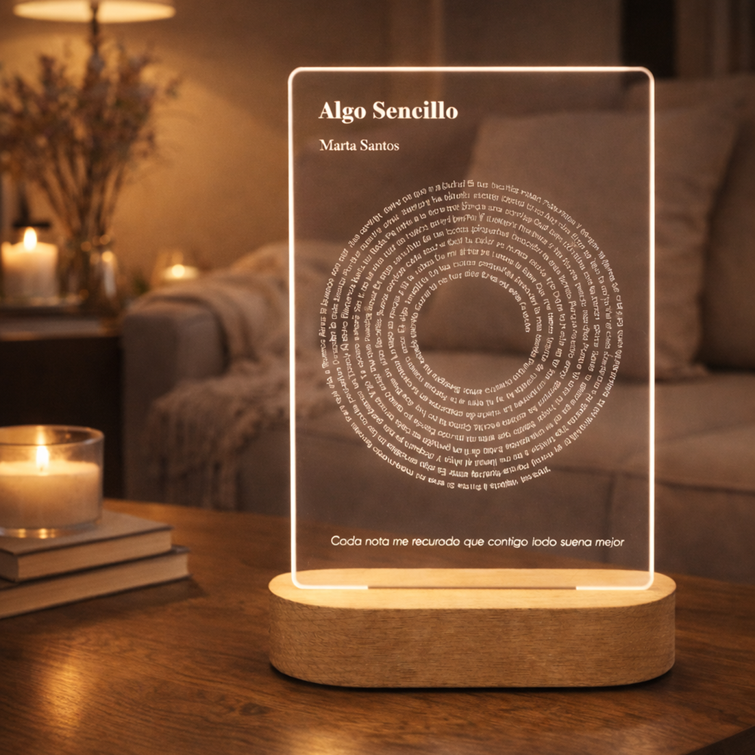 Lámpara metacrilato grabada láser Texto Canción Vinilo