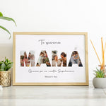 Envíanos las fotos y el texto que quieres incluir. Nosotros crearemos tu cuadro personalizado listo para regalar.