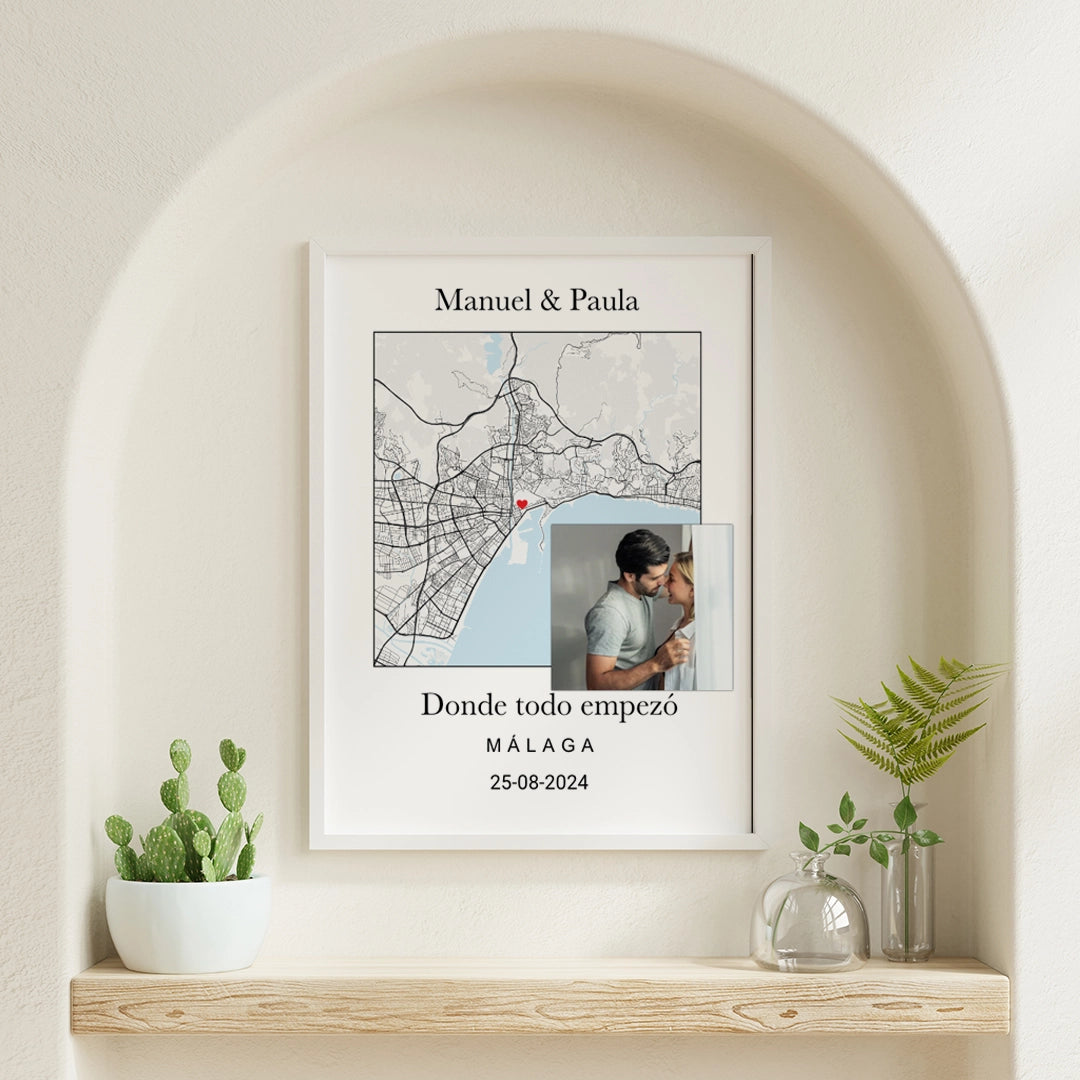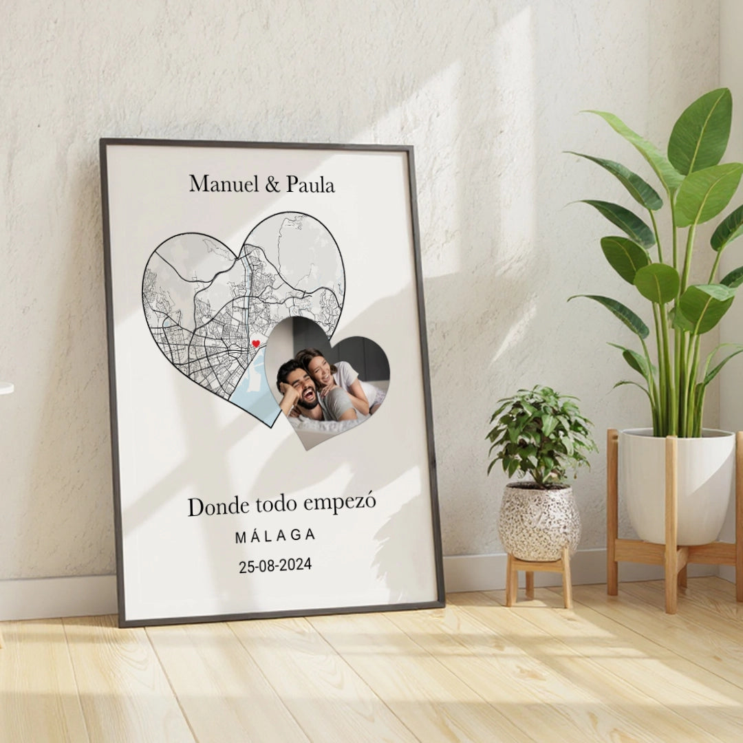 Mapa Corazón con Foto Personalizado para Parejas - Tu Lugar Especial con Nombres y Fecha