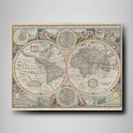 Revive la elegancia de la cartografía antigua con este cuadro decorativo de doble hemisferio.