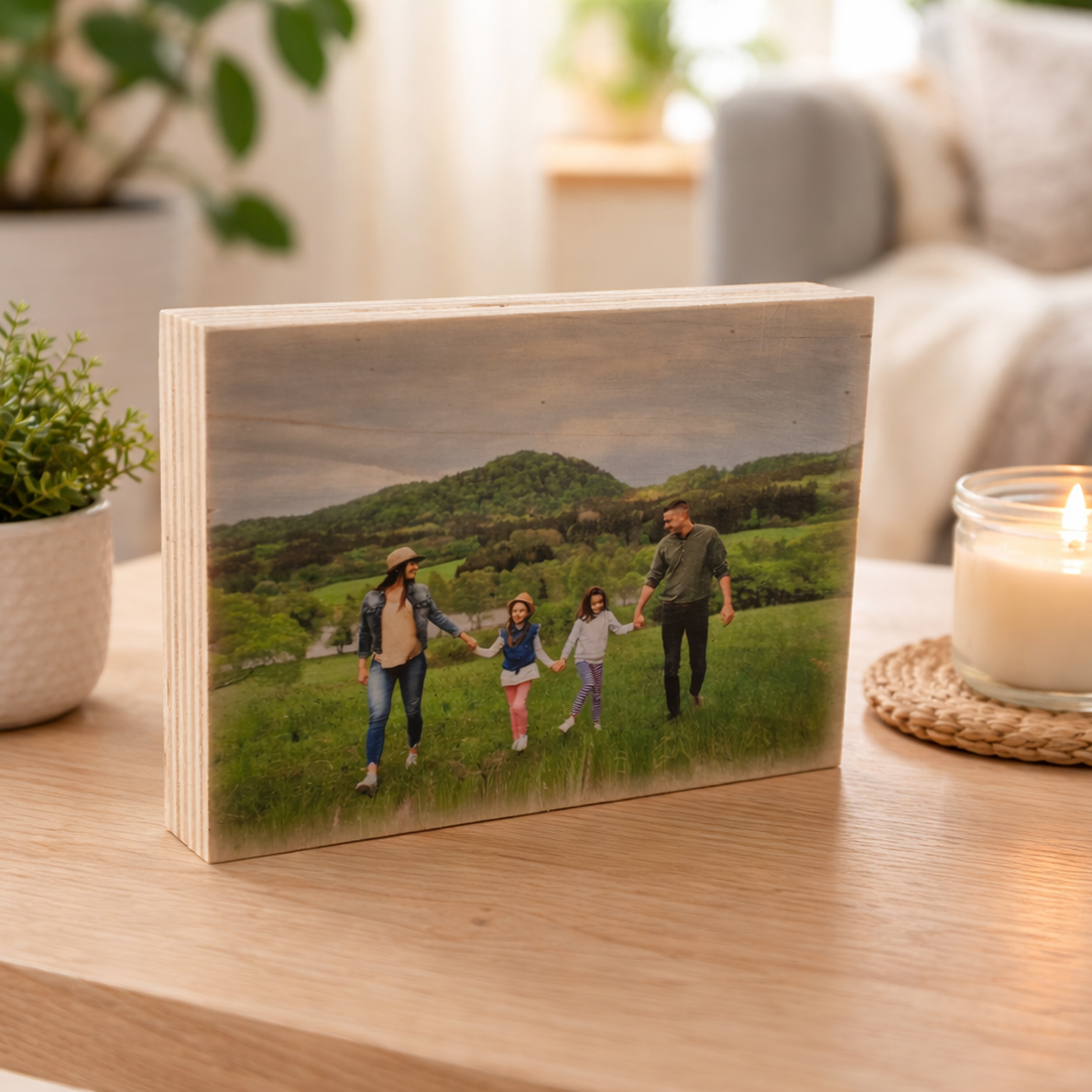 Convierte tus recuerdos en una pieza única con nuestro taco de madera personalizado con foto. Imprimimos tu imagen directamente sobre madera natural, permitiendo que la veta del propio material se integre en la fotografía, creando un acabado cálido, orgánico y lleno de personalidad.