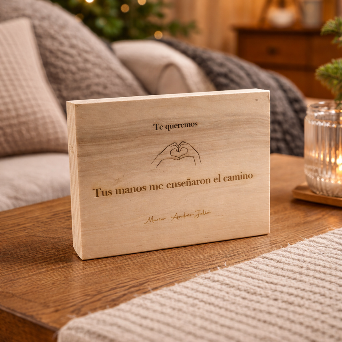 En la parte trasera grabamos una frase, dedicatoria o fecha con láser, para que tu regalo sea todavía más especial 💛. Un detalle perfecto para emocionar y conservar momentos importantes.