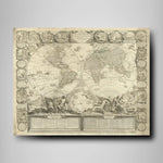 Este Cuadro Mapa del Mundo está inspirado en el histórico "Le Globe Terrestre...", una obra representativa de la cartografía francesa del siglo XVII. Su diseño detallado muestra el mundo con una proyección de doble hemisferio, rodeado de ilustraciones mitológicas, escenas científicas y descripciones geográficas.