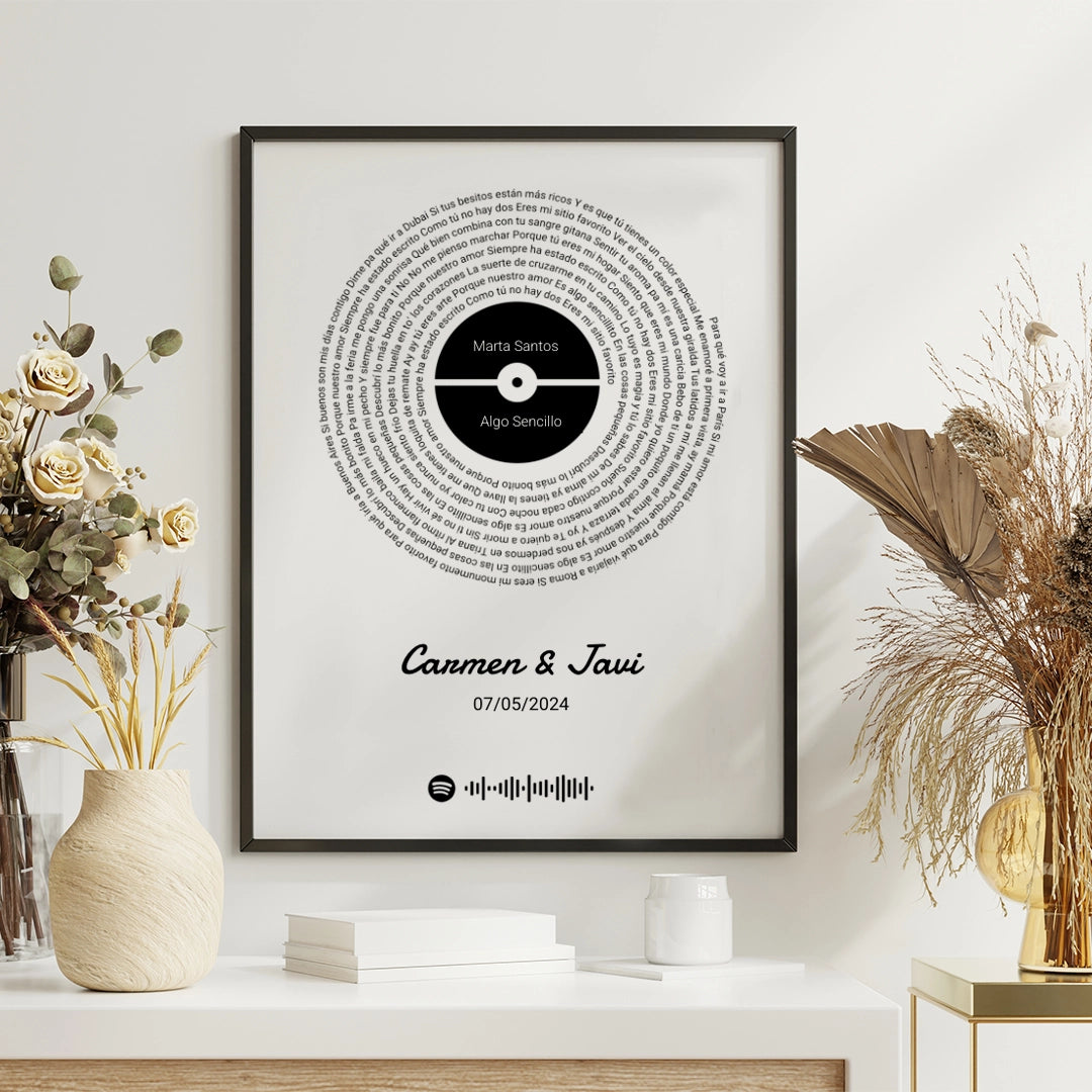 Vinilo Personalizado Vintage con Letra de Canción y Código Spotify